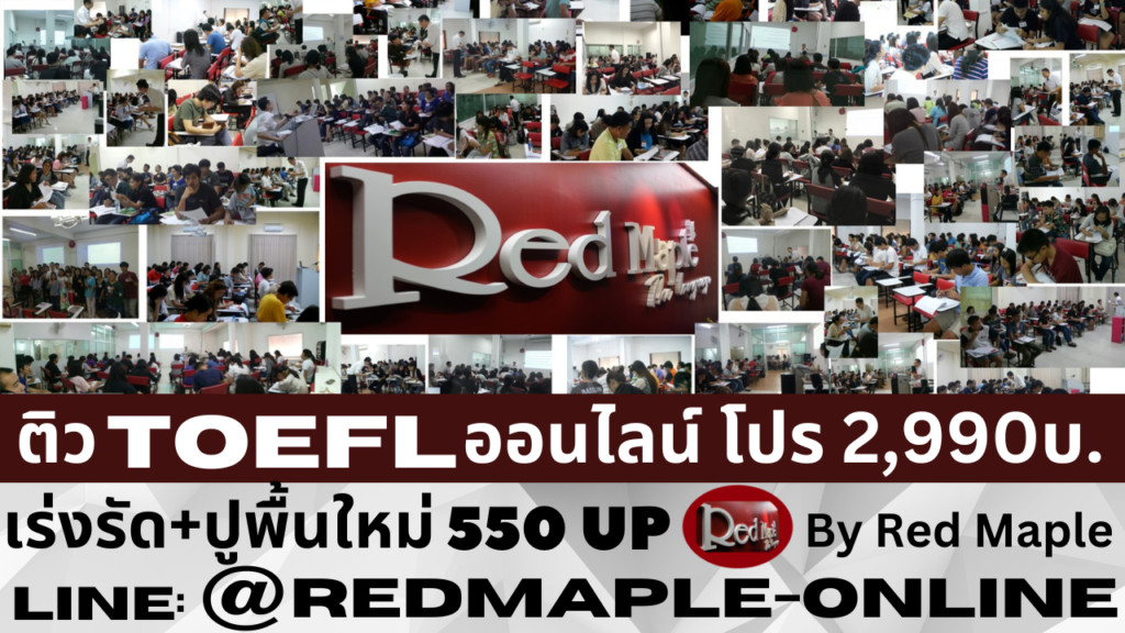 รับโปร 1,990บ.-2,590บ. “โค้งสุดท้ายพร้อมสอบใน7วัน” (รับรอง490Up-520Up) ฉลอง18ปี Red Maple ฝึกตะลุยแนวข้อสอบTOEFL ITPของจริง!!!  แอดไลน์ LINE Official: @redmaple-online